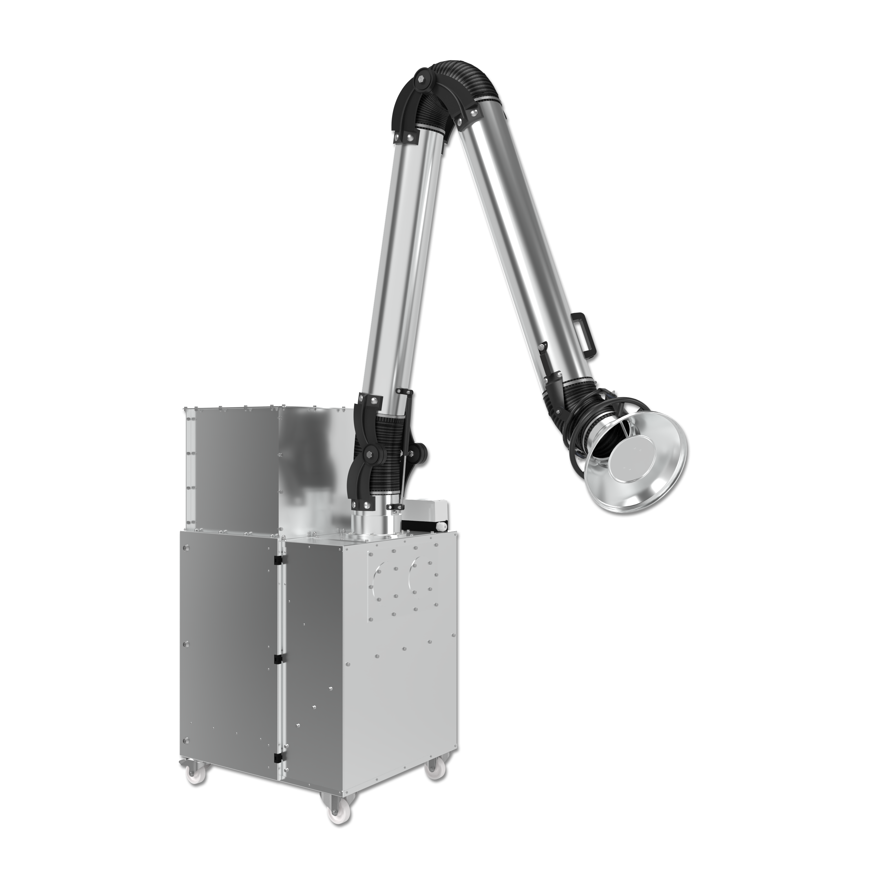 The mobile design allows for easy movement of the filter between workstations, and the stainless steel extraction arm allows for effective capture of contaminants directly at the source.
